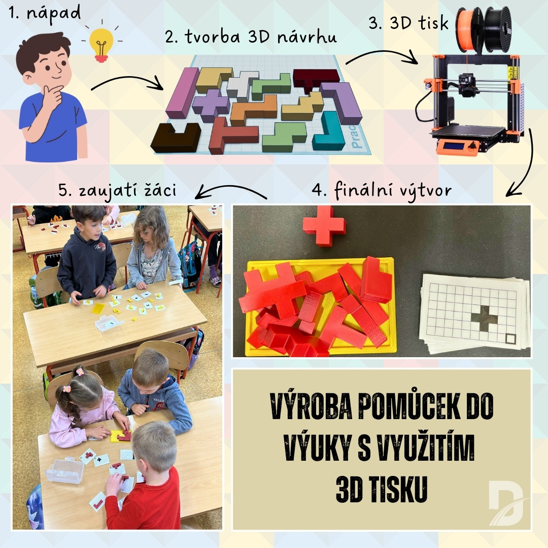 Znáte pentomino? Tato logická hra spočívá ve skládání dvanácti různých dílků do předem daného obrazce. Nově ji mají k dispozici i žáci ZŠ Dobiášova. Stačilo přijít s nápadem, vytvořit 3D model, vytisknout jej na 3D tiskárně – a to hned osmkrát. Vše z vlastní iniciativy připravil pan učitel Matoušek. |