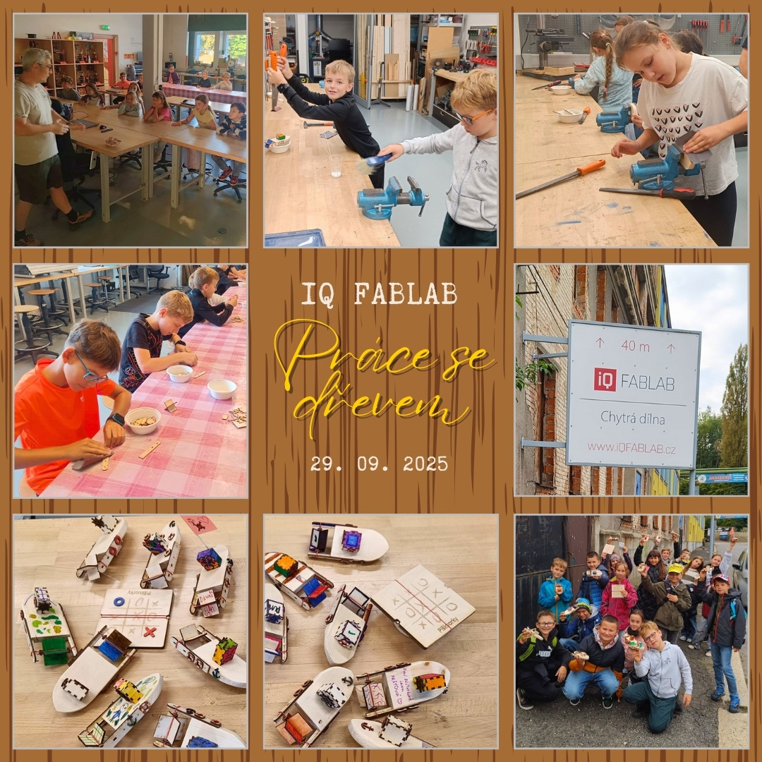 V pondělí 29. 9. se žáci 4.C zúčastnili programu „Práce se dřevem“ v dílně IQ FABLAB. Pod vedením odborníků si vyrobili vlastní dřevěné lodičky a někteří se pustili i do tvorby společenské hry Piškvorky, která jim zpestří školní přestávky. Práce s dřevem i nářadím je velmi bavila. -MN- |