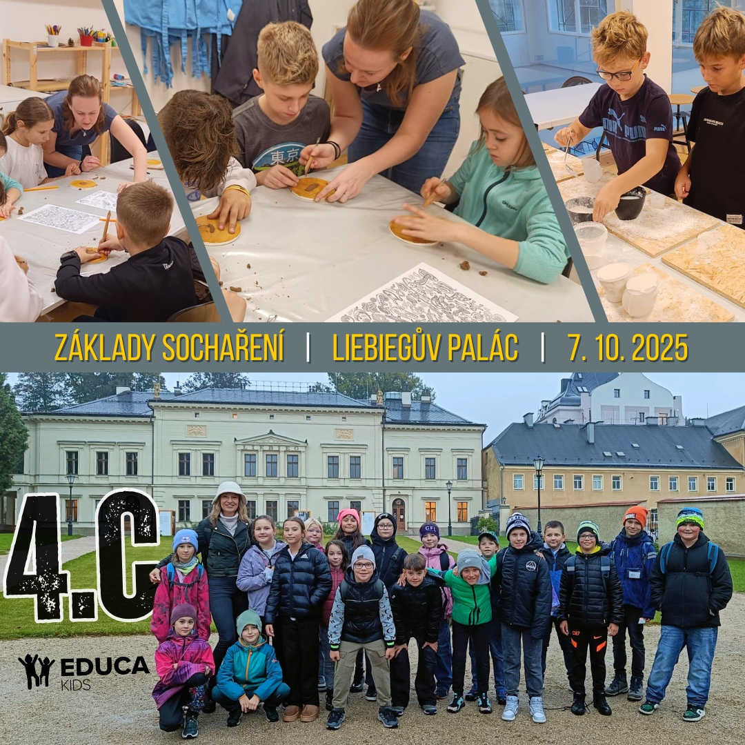 | Žáci 4.C se 7. října vydali do Liebiegova paláce, kde se zúčastnili programu Základy sochaření v rámci Educa Kids. Vyzkoušeli si míchání, odlévání i rytí do sádry a modelování hlíny. Všichni si odnesli nejen nové zkušenosti, ale i vlastní sádrové výrobky a malé dárky od Educa Kids. 🎨👩🎨👨🎨 |