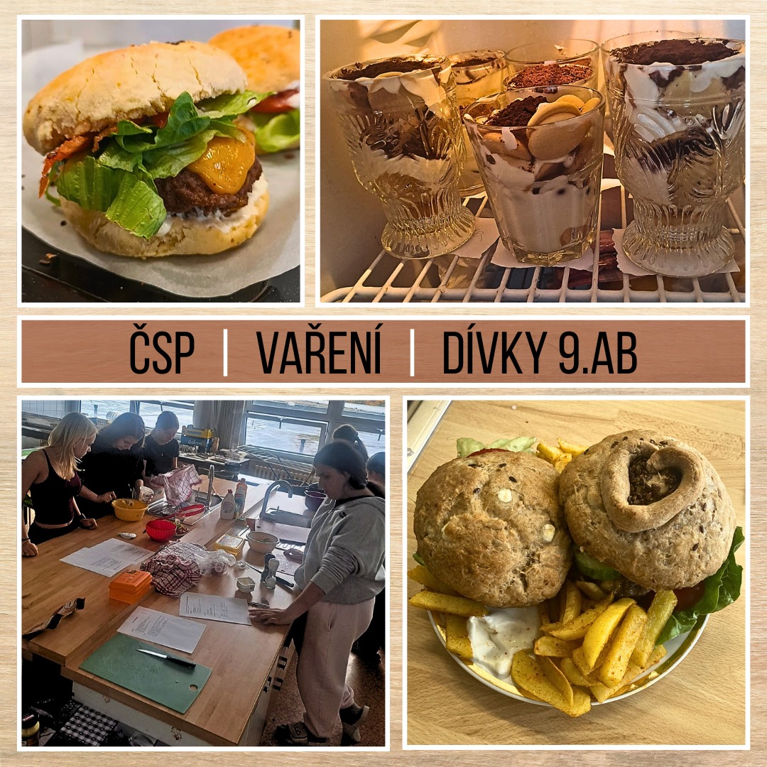 | 🍝🥗 Týden plný chutí ve školní kuchyni! V úterý a ve středu holky z 9. A B rozjely pořádné kulinářské dobrodružství – vařily jsme těstovinový salát s kuřecím masem, zdravé tiramisu a zdravý burger s domácí bulkou a hranolkami. Kdo říká, že zdravé jídlo nemůže chutnat skvěle, ten u nás ještě nevařil! 😋👨🍳👩🍳 |