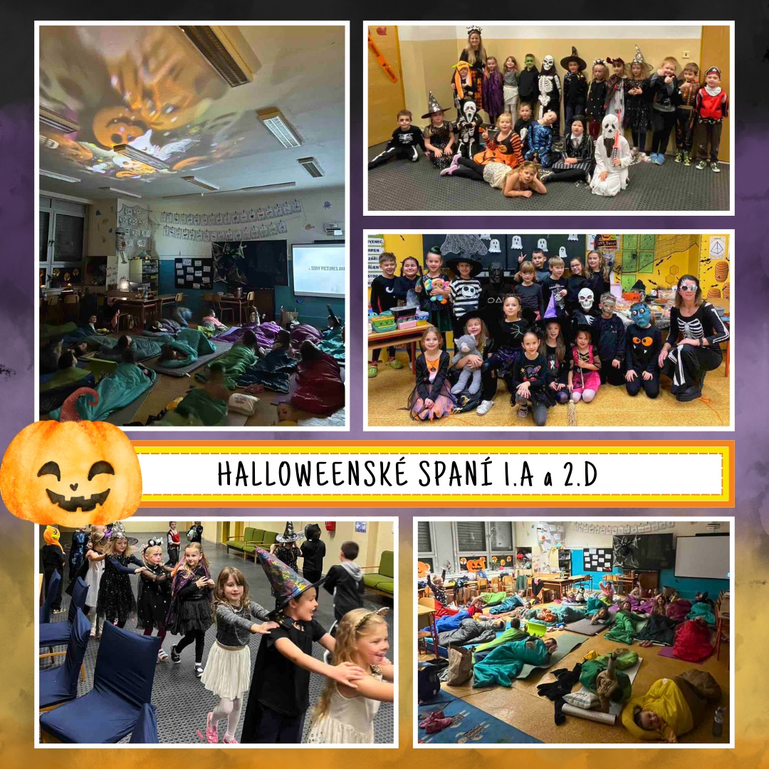 | Halloweenské spaní 1.A a 2.D - Tma, světýlka dýní a ozvěny smíchu v chodbách školy… 🌒 Třídy 1.A a 2.D si užily kouzelné halloweenské spaní ve škole, kde se potkaly čarodějnice, duchové i stateční hrdinové! 💫 Nechyběla strašidelná stezka, diskotéka a samozřejmě pohádka na dobrou noc.💤 Těšíme se na další spaní! 🛌 Kačka L. + Míša N. |