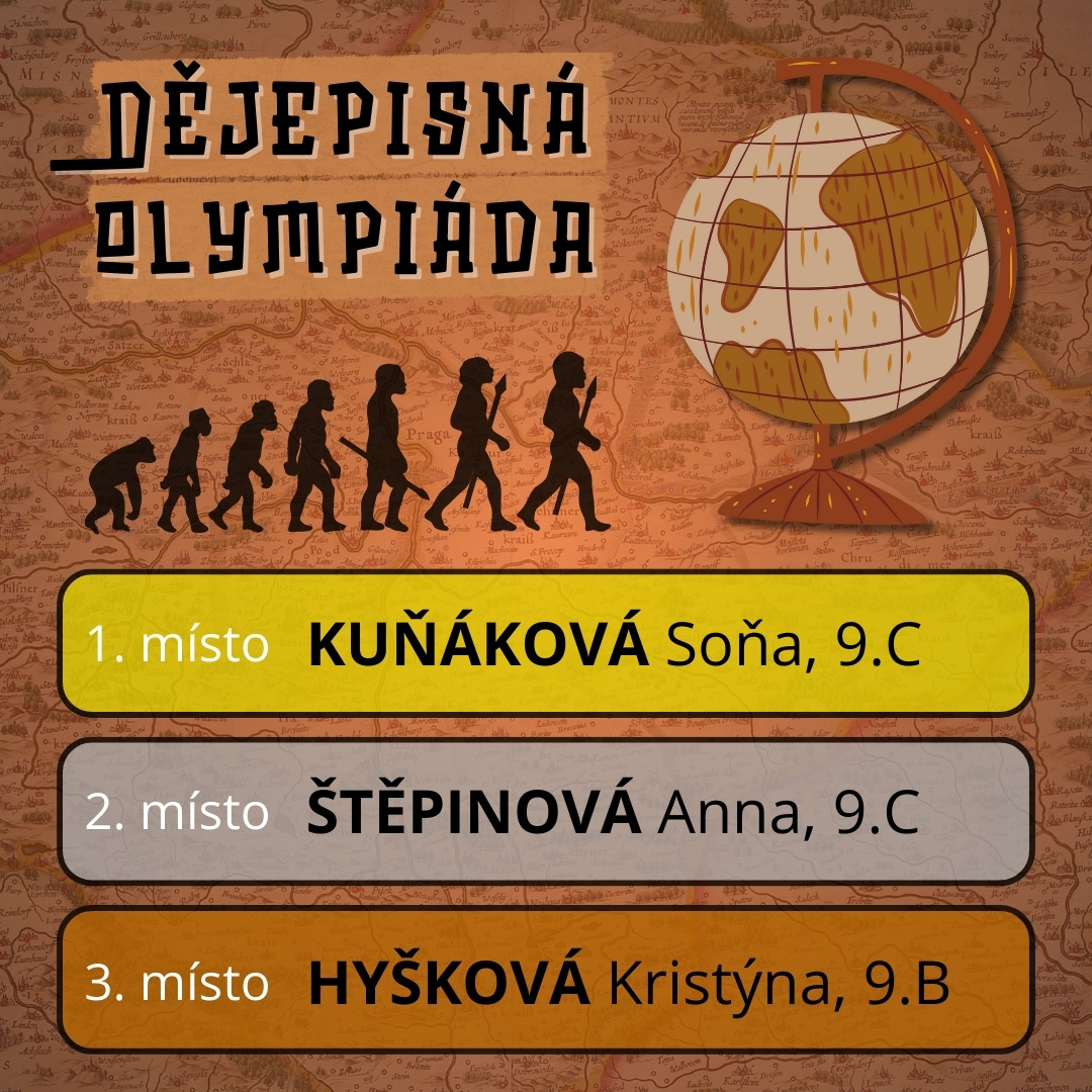 | Výsledky dějepisné olympiády. Všem děkujeme za účast a vítězům gratulujeme! |