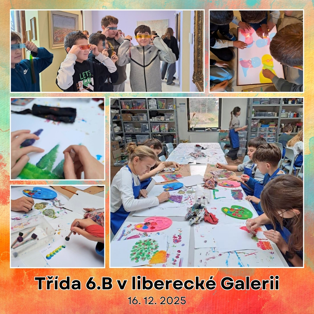 | Dne 16.12. navštívili žáci 6.B Oblastní galerii v Liberci. Čekala na nás lektorka se vzdělávacím programem"Prostor, světlo, barva". Výstava Jana Vochoče nás provázela první částí programu. Maloval realistické portréty a experimentoval se světlem a barevnými tóny. Na základě obrazů se žáci dozvěděli o základních barvách, jejich míchání a o vzniku duhy. Představovali si svět bez barev. V druhé části si vyzkoušeli tzv. pointilismus neboli tvorbu obrazu drobnými tečkami. Taktéž Jan Vochoč takto tvořik. Byl to zajímavý zážitek. -LP- |