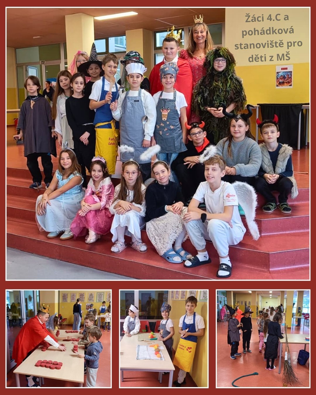 | Jídelna se proměnila v pohádkovou říši! ✨ Žáci 4.C si pro děti z mateřinek připravili šest zábavných stanovišť s úkoly. Za odvahu a šikovnost nechyběla sladká odměna. 🍬 Největší radost ale udělaly úsměvy na tvářích všech zúčastněných. Bylo to zkrátka povedené dopoledne! 👌 |