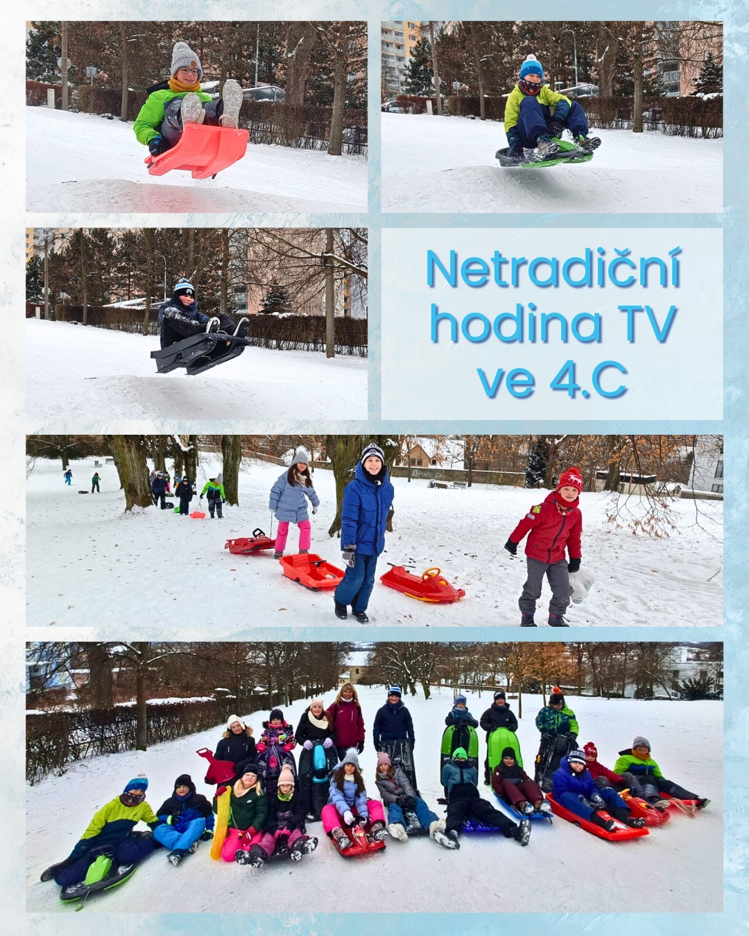 | Netradiční hodina tělesné výchovy na sněhu ve 4.C. |