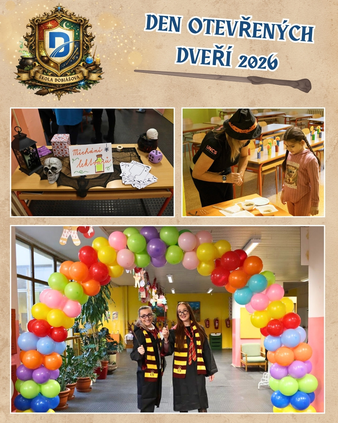 | Ve středu 14. 1. 2026 proběhl Den otevřených dveří na naší škole. Tentokrát na téma Škola čar a kouzel. Kompletní fotogalerii naleznete na webu školy. |