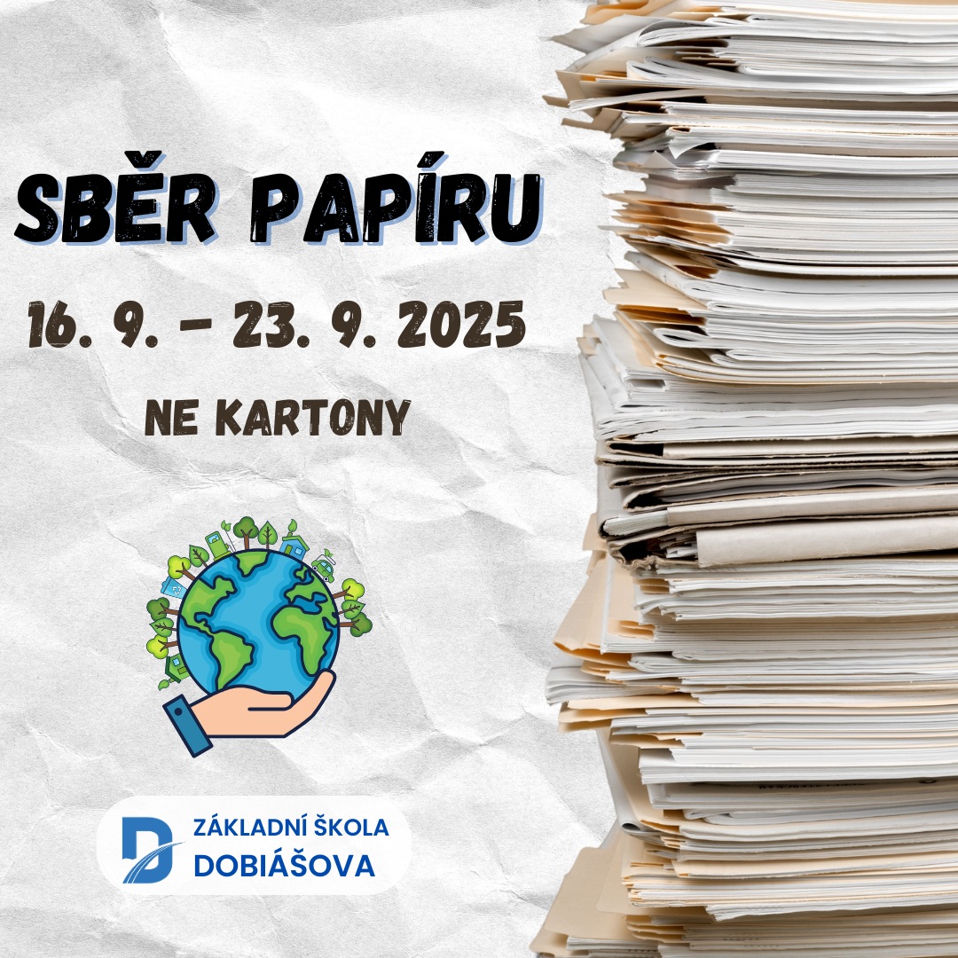 Sběr papíru se konal 16. 9. - 23. 9. 2025. Děkujeme všem, kteří se zapojili. |