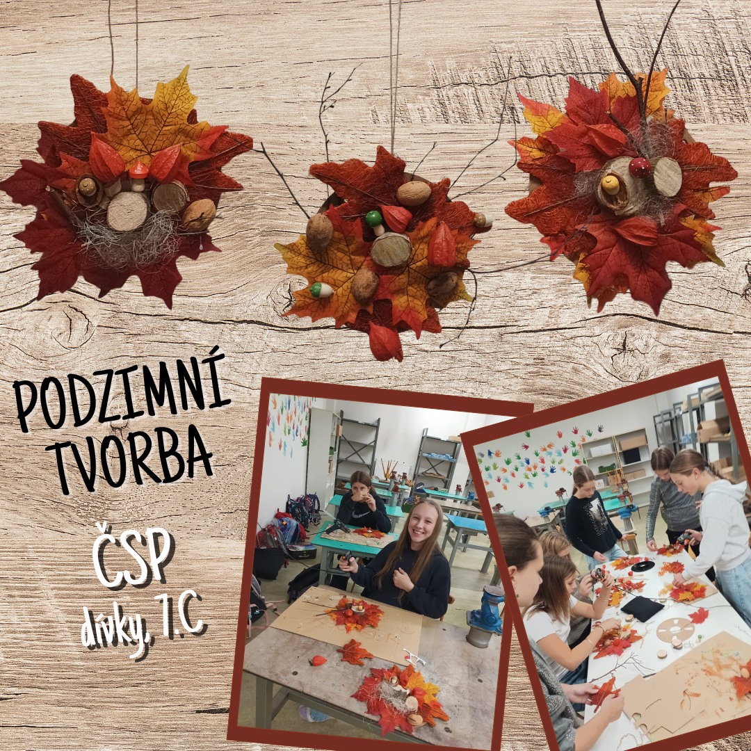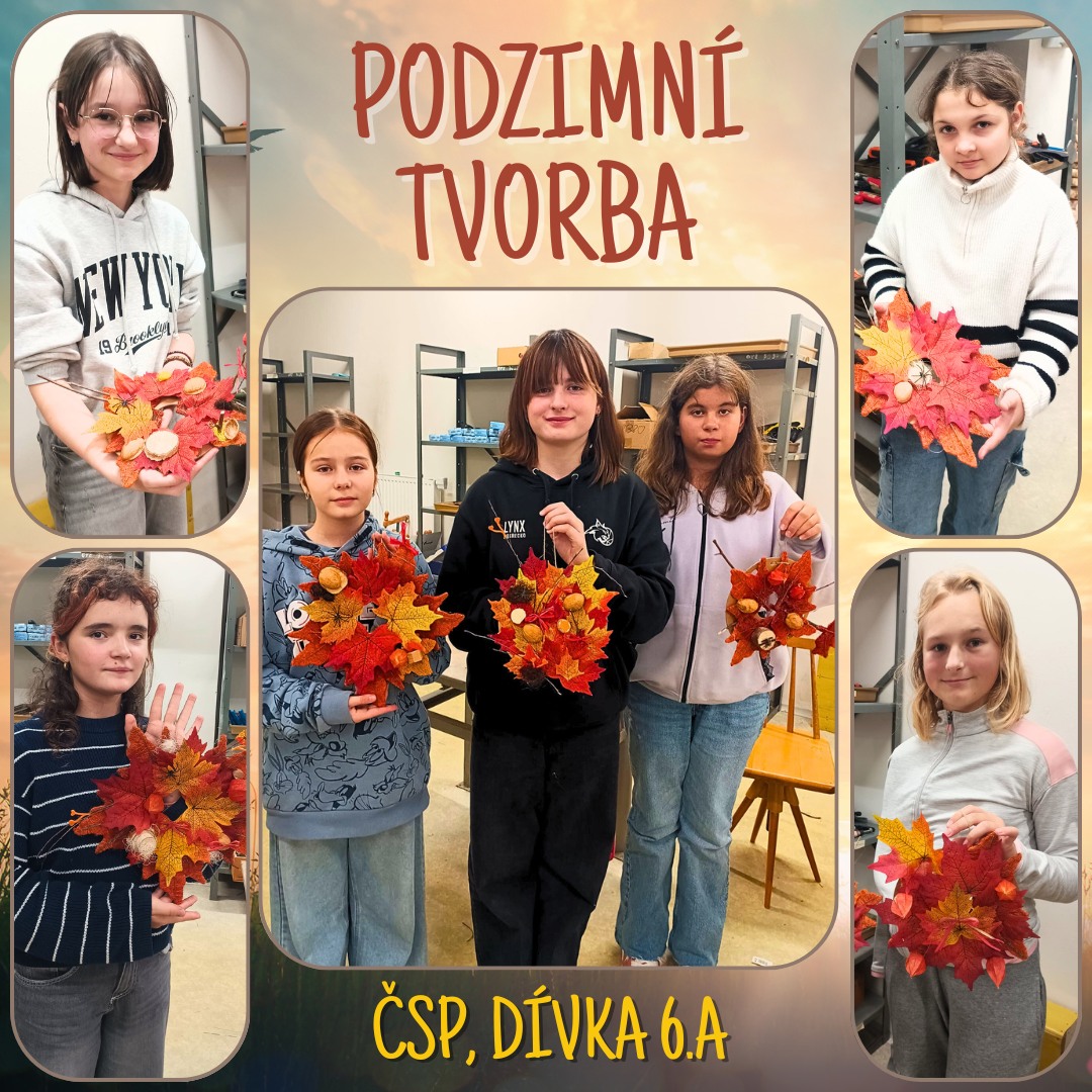 | Podzimní tvorba dívek ze 6.A v hodinách ČSP. |