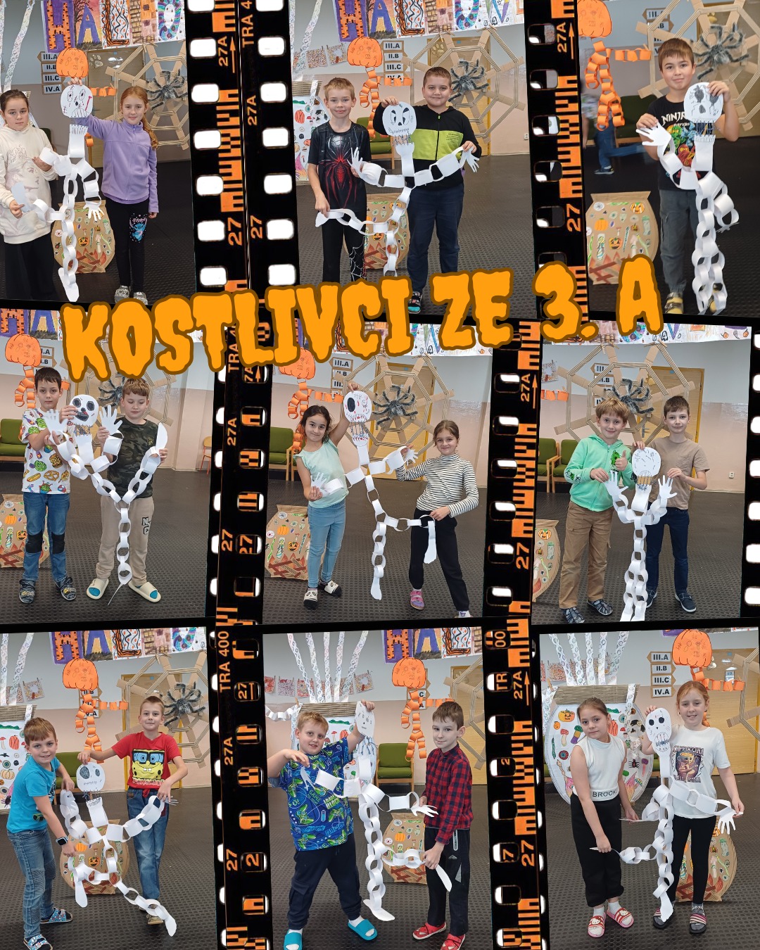 | Žáci 3.A si v rámci pracovních činností vyrobili kostlivce, aby si připravili na novodobý svátek Halloween. |