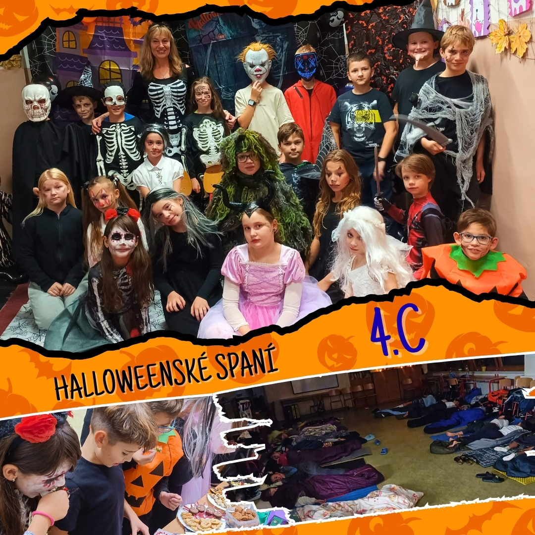 | Halloweenské spaní ve škole 🎃 4.C - V noci ze středy 22. 10. na čtvrtek si žáci 4.C užili noc plnou strašidel.👻 Čekala je soutěž masek, stezka odvahy s úkoly, tanečky, úniková hra a na závěr přespání ve třídě na karimatkách💪. Za úžasnou stezku odvahy moc děkuji žákům 8.C -MN- |