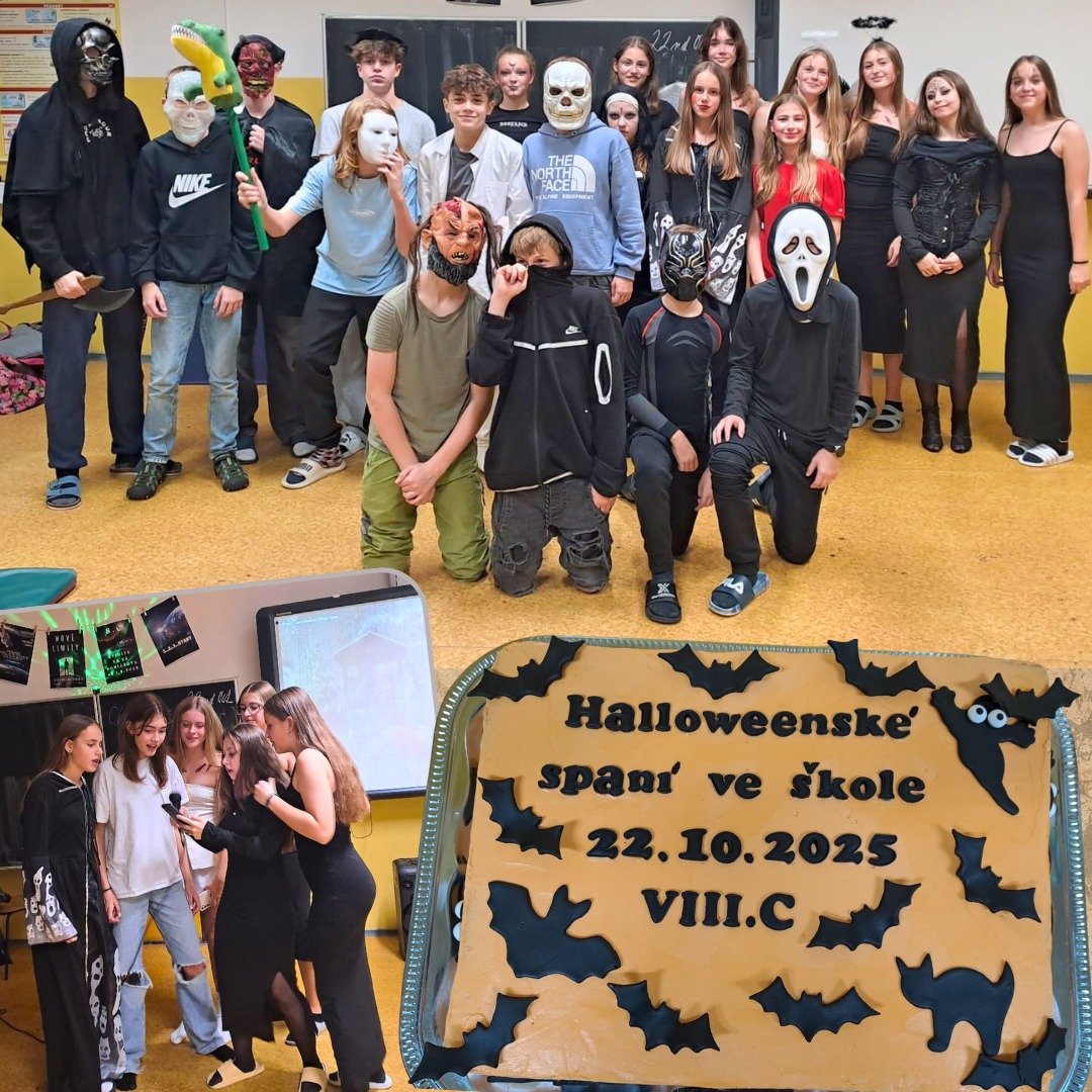 | Halloweenské spaní třídy 8.C ze dne 22. 10. 2025. |