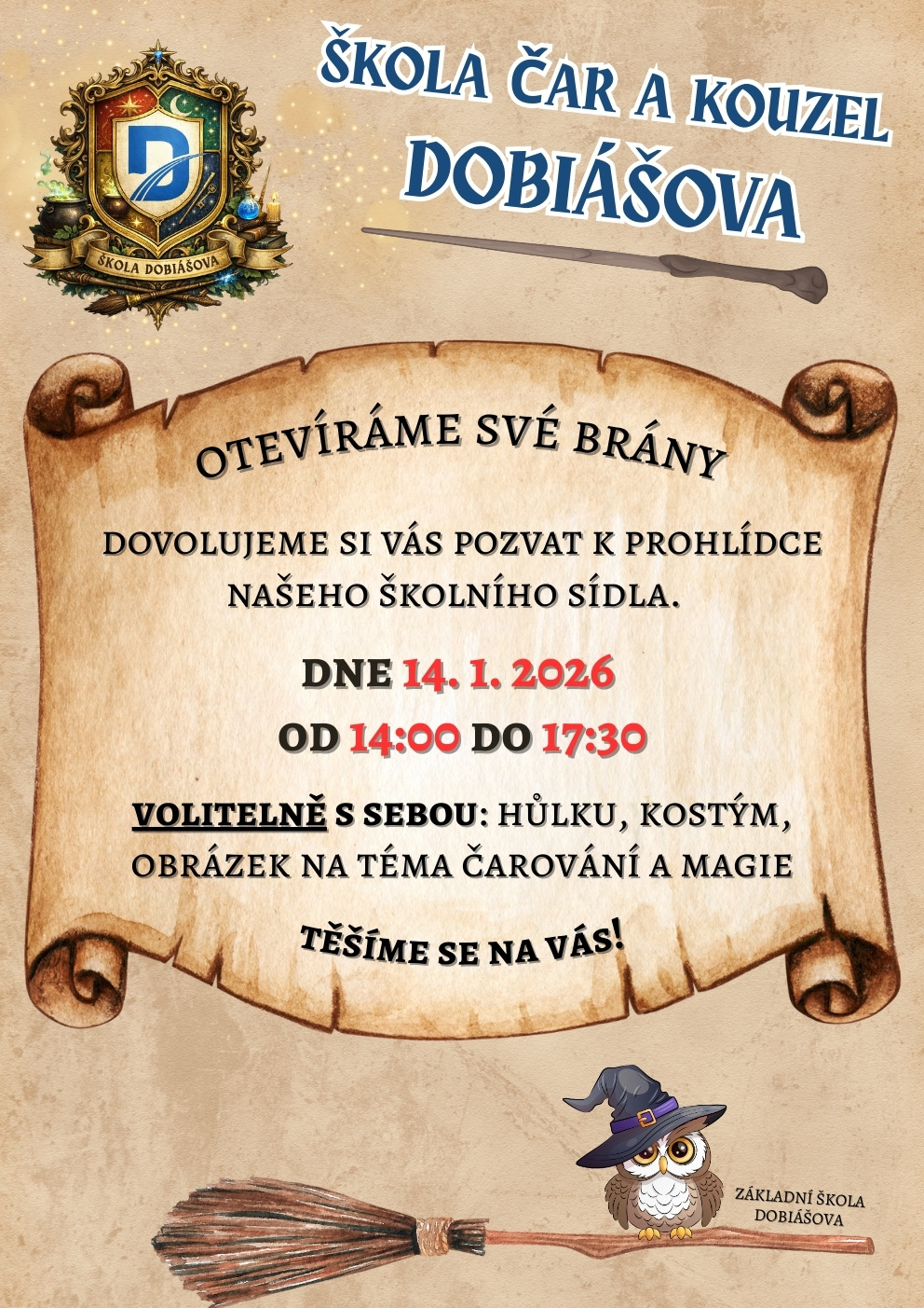 Pozvánka na Den otevřených dveří 2026 Tomáš Jirutka 17 December 2025 Zveme Vás na tematický DOD ve středu 14. 1. 2026 od 14:00 do 17:30.