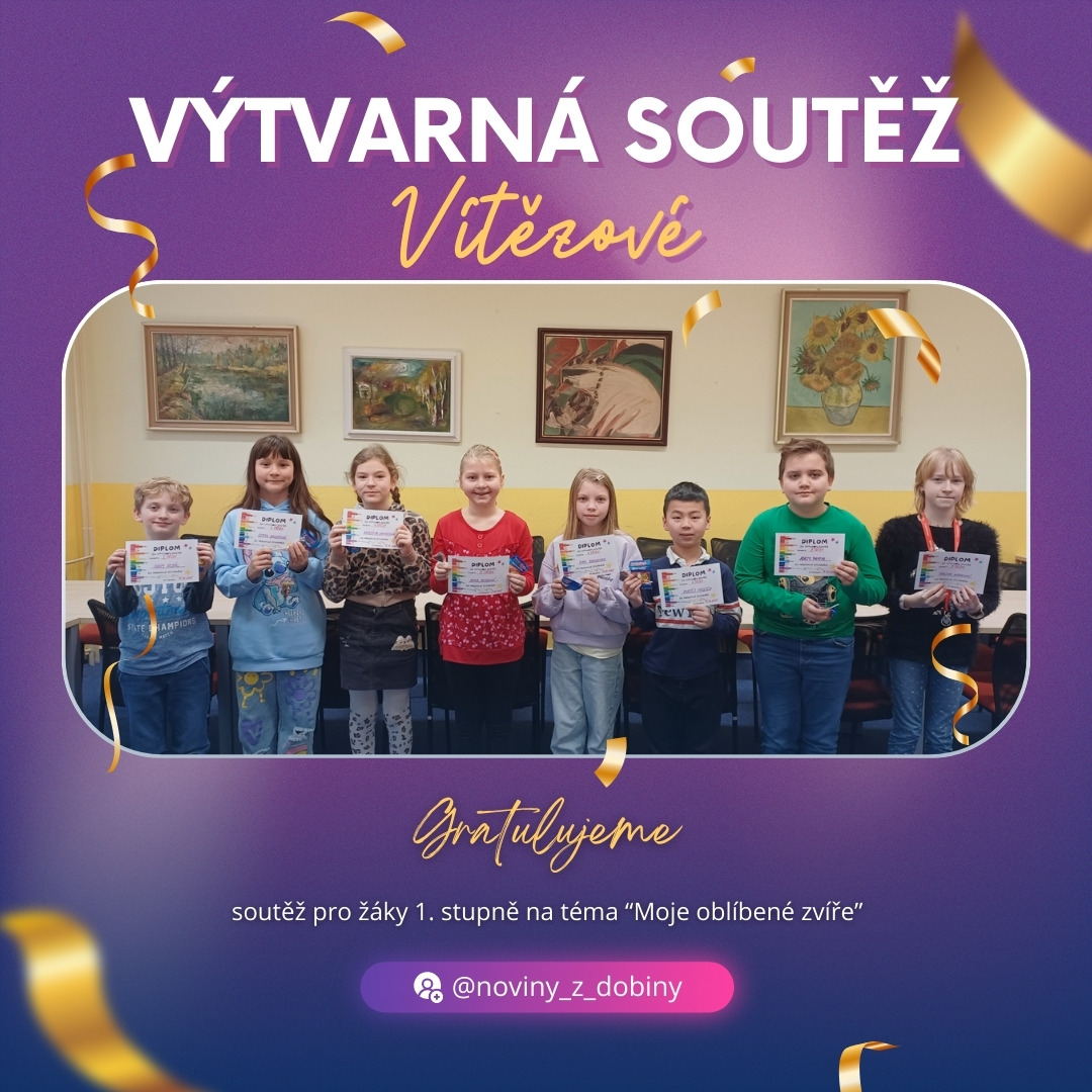 | V listopadu proběhla na 1. stupni výtvarná soutěž na téma "Moje oblíbené zvíře ". Děkujeme všem, kteří se zapojili. Obrázky výherců můžete najít ve vestibulu školy. V. Viková a D. Houserová |