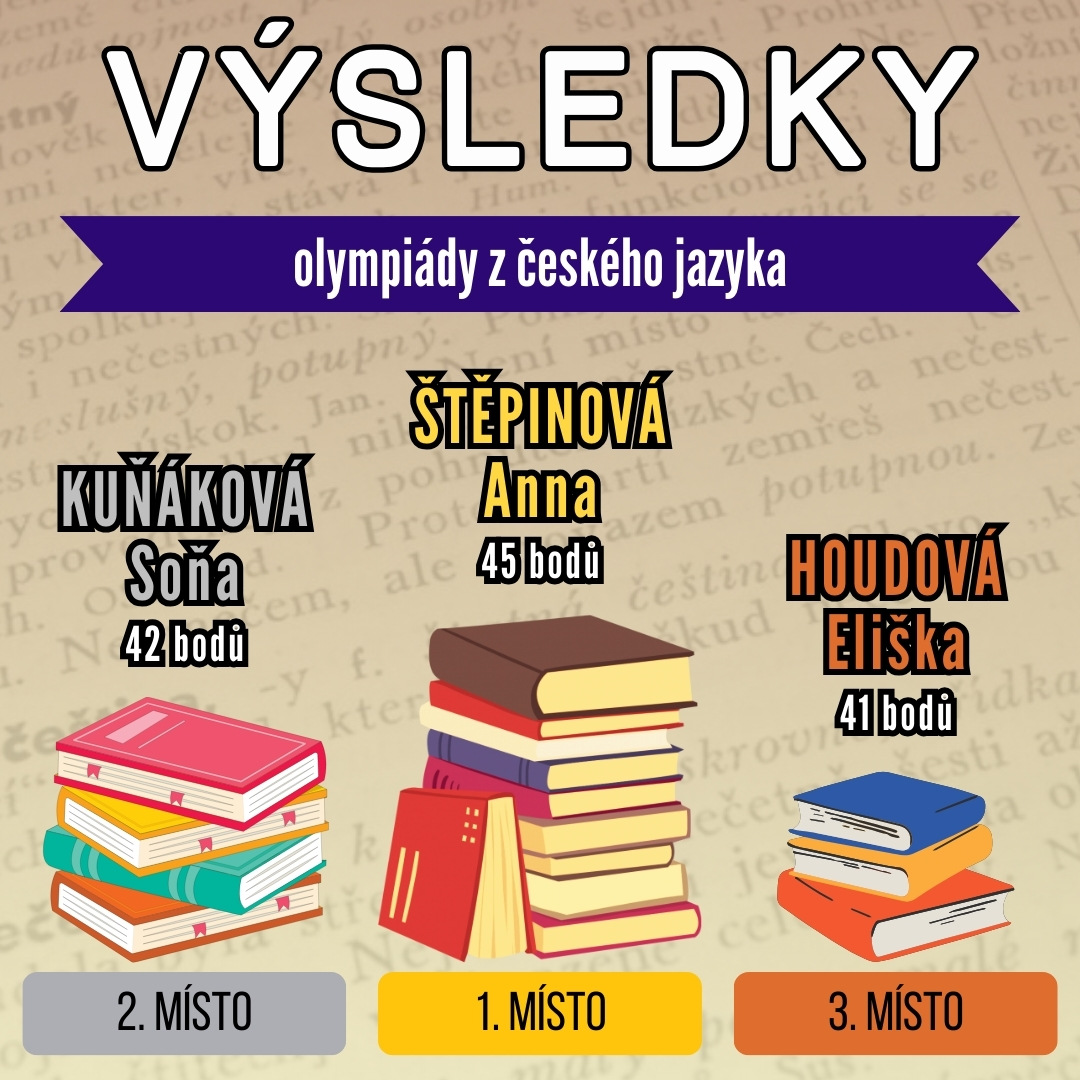 | Výsledky olympiády z českého jazyka. Všem děkujeme za účast a vítězům gratulujeme! |