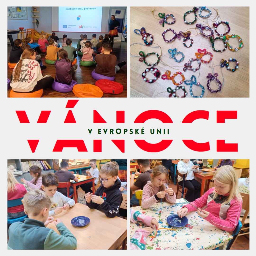 | V pátek 6. prosince žáci 4. C navštívili předvánoční program " Vánoce v EU" ve V- klubu. Dozvěděli se hodně zajímavých informací o tom, jak se slaví vánoční svátky v dalších zemích EU a vytvořili korálkové ozdoby na vánoční jarmark. -MN- |