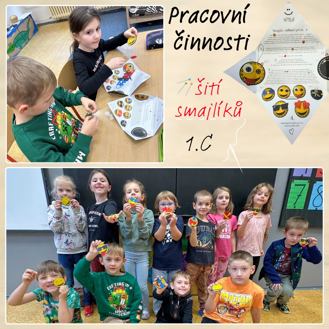 | Pracovní činnosti třídy 1.C - šití smajlíků :). |