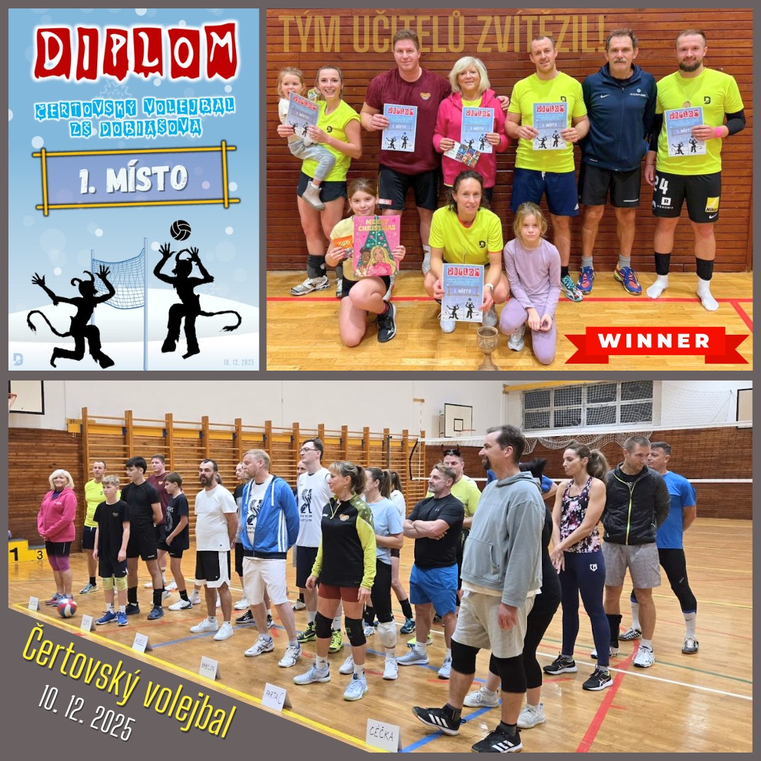 | 🔥 Čertovský volejbal 10. 12. - parádní atmosféra, napínavé finále a skvělá energie všech zúčastněných! Díky všem, kteří dorazili a vytvořili super náladu. Těšíme se zase za rok! 🙋♀️✨ 🏐 Výsledky: 1️⃣ Učitelé, 2️⃣ Parta C, 3️⃣ Čerti, 4️⃣ Céčka, 5️⃣ Andělé, 6️⃣ Babylon Kompletní fotoalbum naleznete zde. |