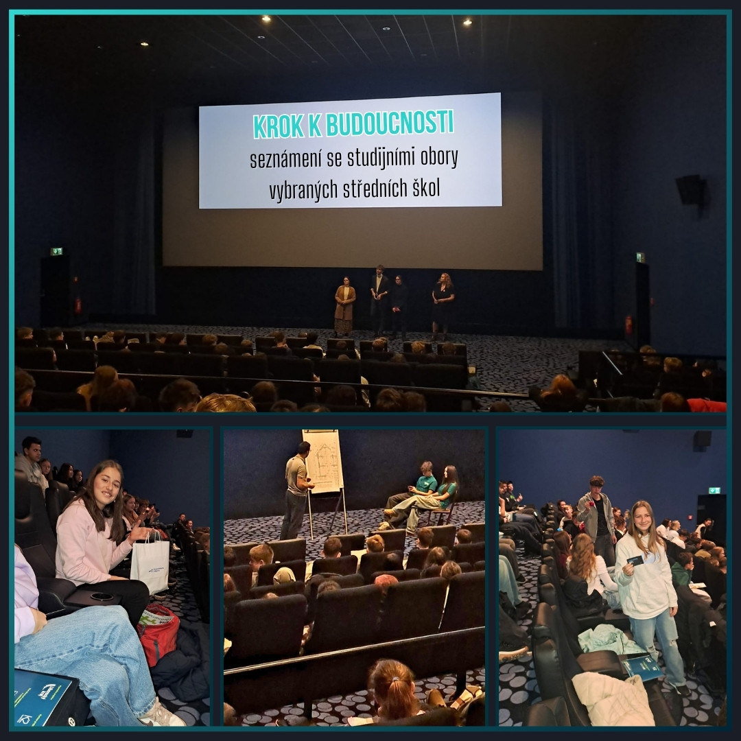 | Ve čtvrtek 11. 12. se žáci osmého ročníku zúčastnili programu Krok k budoucnosti v kině Cinestar. Seznámili se se studijními obory vybraných středních škol. Někteří vyhráli i drobné ceny. |
