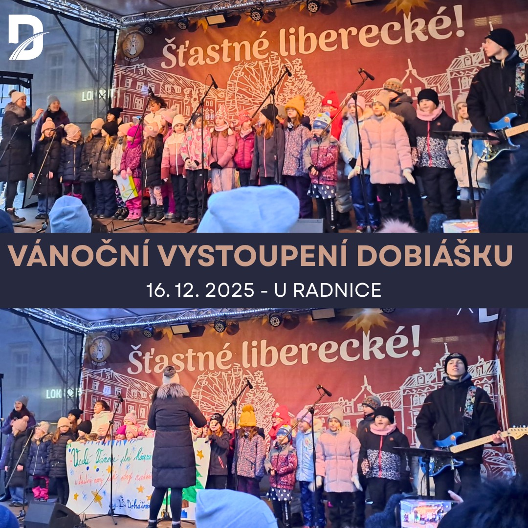 | Vánoční vystoupení pěveckého sboru Dobiášek před radnicí v úterý 16. 12. 2025. |