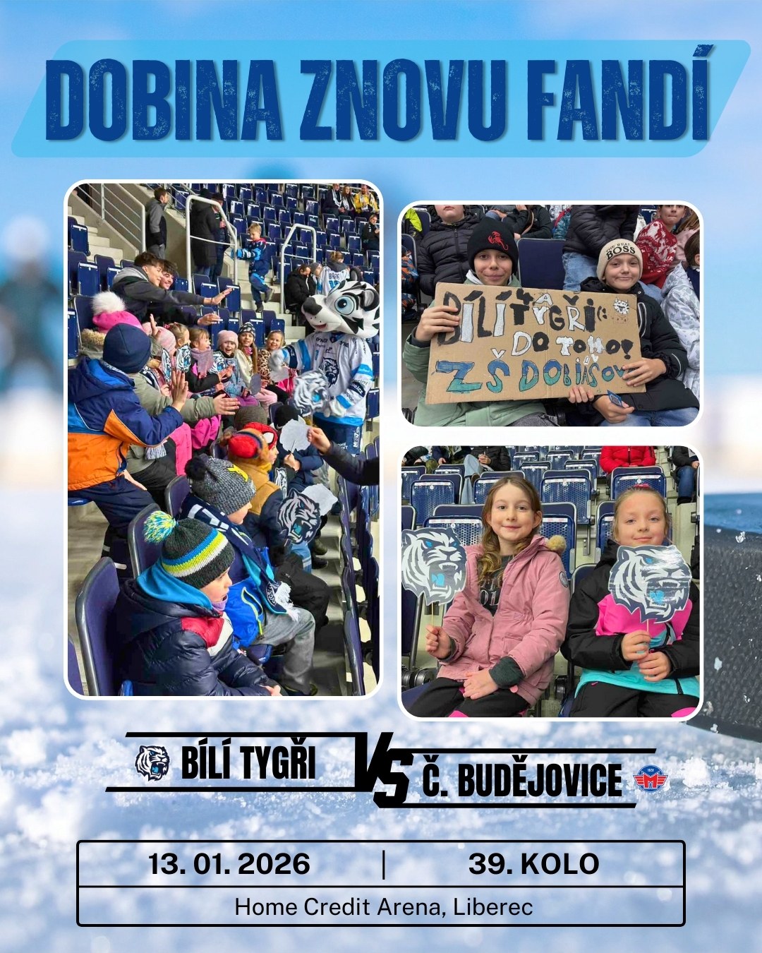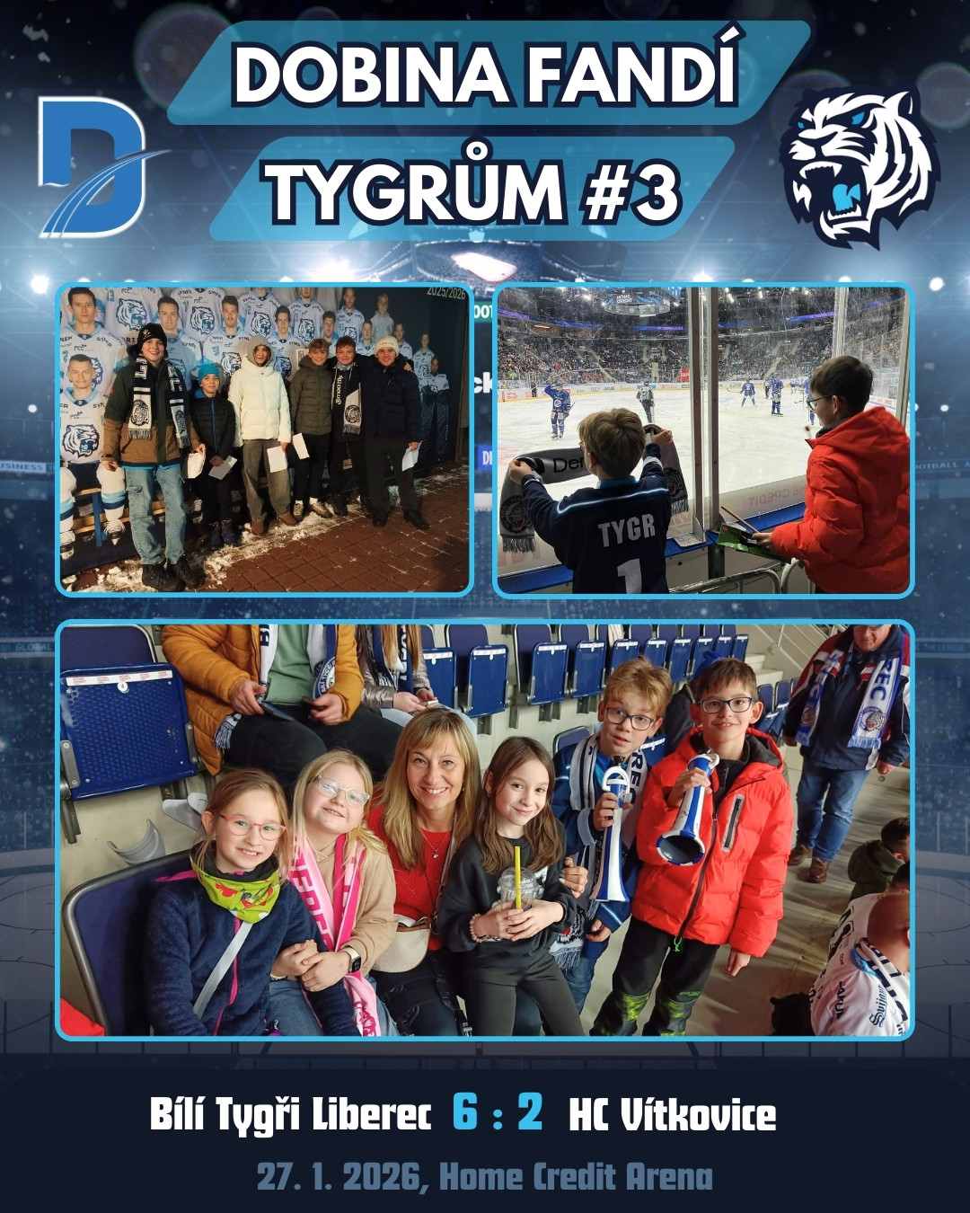 | Dobina opět fandí tygrům! 🥅🏒 V úterý 13. ledna vyrazily třídy I.A a IV.A na hokejové utkání mezi Bílými tygry Liberec a Motorem České Budějovice. Děti z I.A fandily skvěle, dokonce tak, že za to vyhrály pizzu. Všichni si to náramně užili a výsledek zápasu nás moc potěšil. Příště vyrazíme zas! KL, BJ |